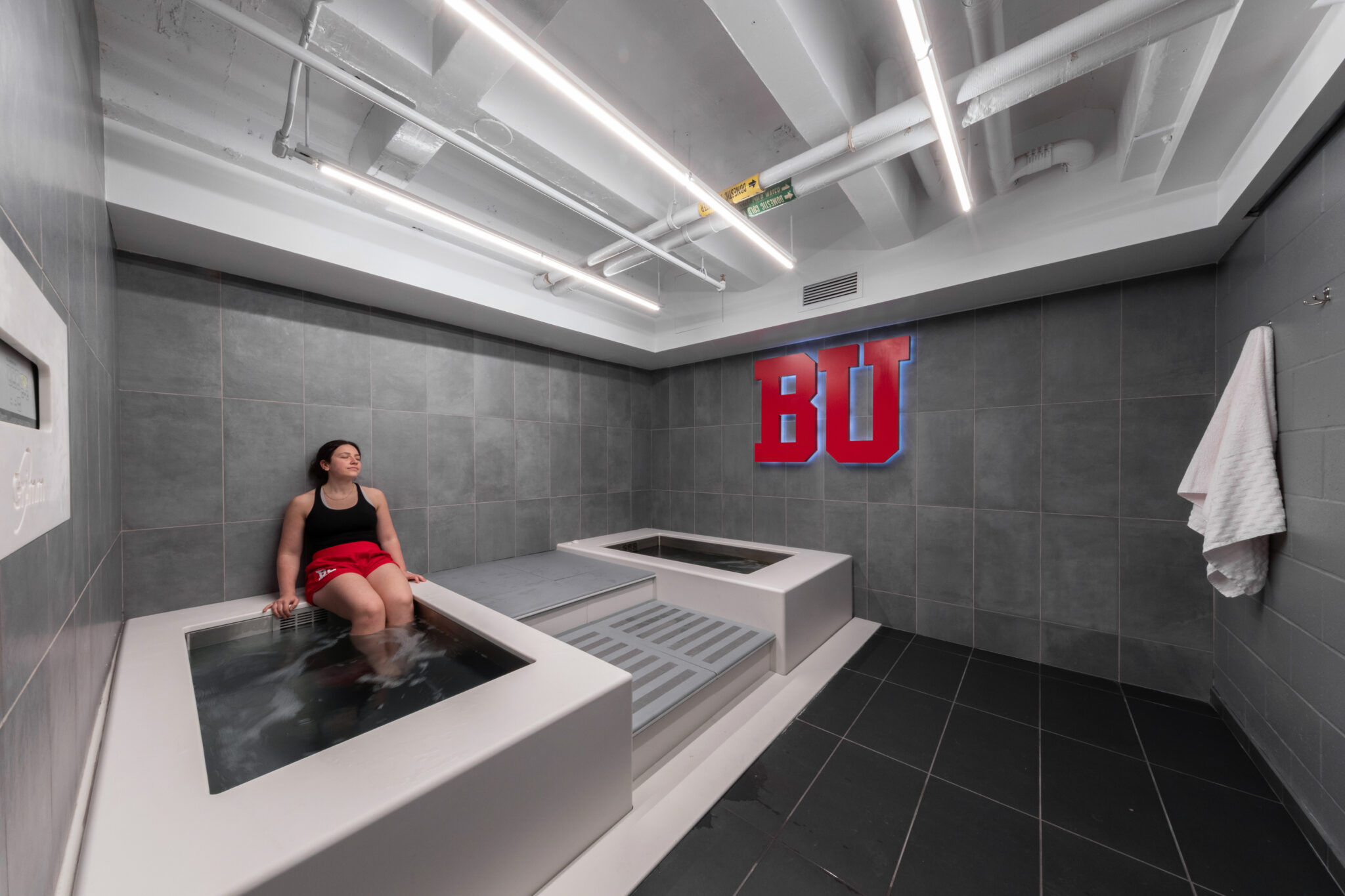 The 19,200-SF Boston University Walter Brown Arena Locker Room Renovations project upgrades the Women’s Hockey Locker Room, Men’s Basketball Locker Room, and common areas. The scope of the Women’s Locker Room includes renovations to multiple levels of the BU Case Center, featuring the hockey team suite, coaches’ offices, athletic training areas, and other services.