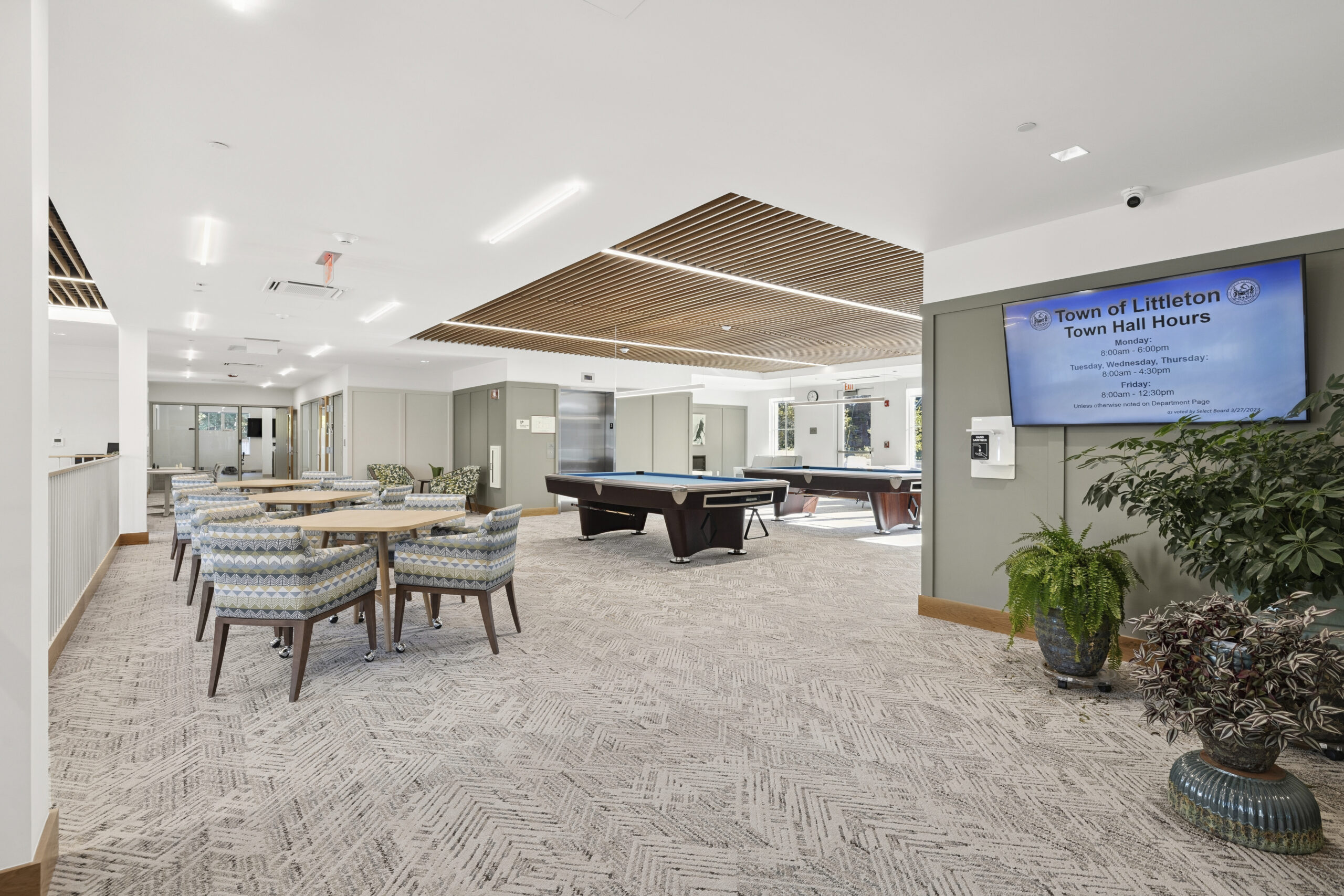 The new 17,600 SF multi-story senior center addresses the Town of Littleton’s space needs for programs that support the senior population, residents with disabilities, and all those in need of assistance. The new facility is wood and steel construction built into the existing slope and is handicapped accessible, with two levels and an elevator. All new buildings systems are required, including mechanical, electrical, plumbing, fire protection, and security systems.